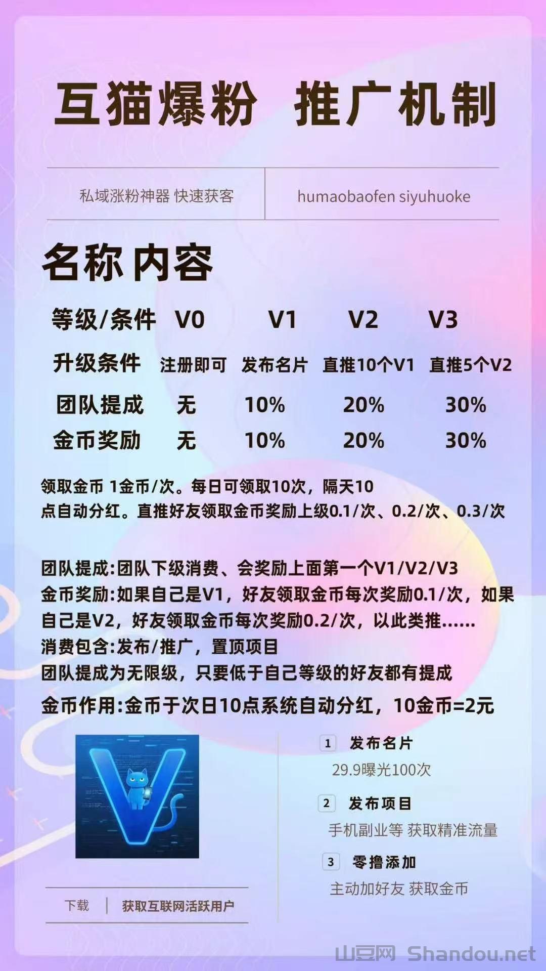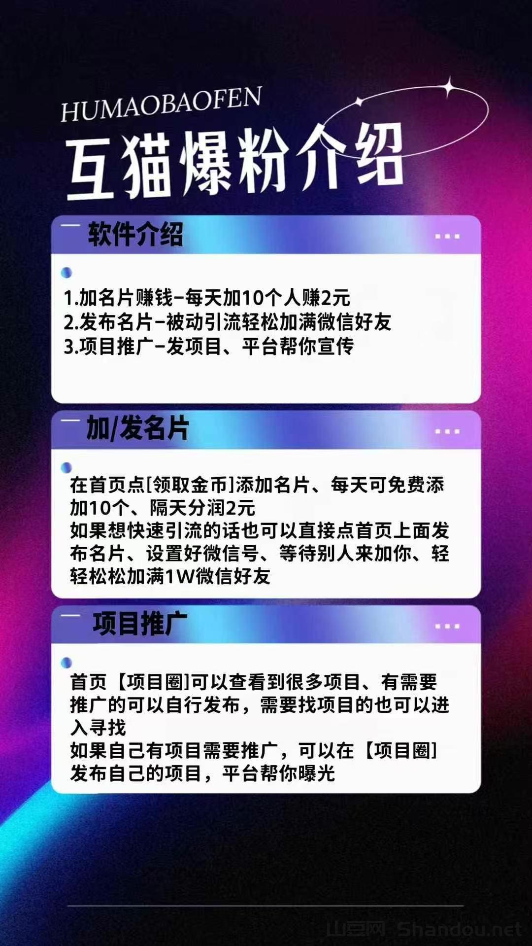 互猫爆粉最近刚上线,主打人脉资源匹配。注册成为会员后,系统会自动分配20人左右添加你的微信。每个新好友需要给你发10元红包,通过审核后成为你的下级。平台强调不设资金池,单纯做人脉对接。