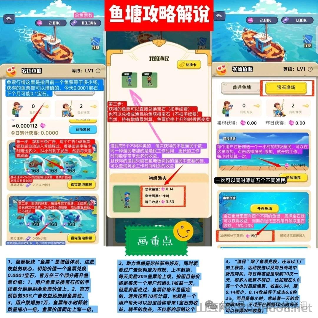 续费)渔夫上岗产生收益(宝石)。